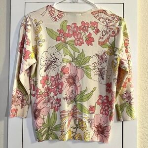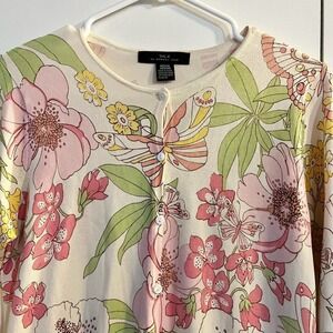 Silx By August Silk Floral Silk Blend Cardigan Sweater Size M