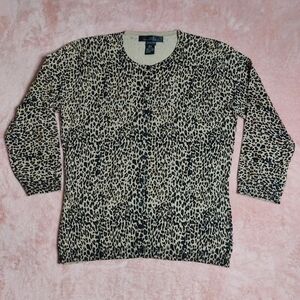Silx By August Silk Women's Leopard Print Silk blend button Cardigan Size Small