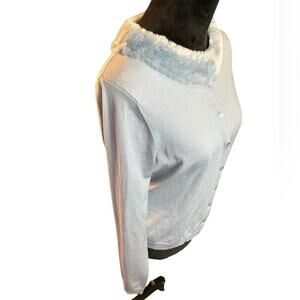 Silx by August Silk Blue Faux Fur Cardigan Women's Size Large