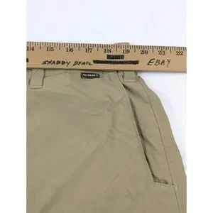 The Simms Fishing Shorts for men in size 40x8 are perfect for outdoor activities like hiking and fishing. These brown shorts feature a stretch waist for a comfortable fit and a mid-rise design. With a chino style and a classic 5-pocket design, these lightweight shorts are ideal for summer, fall, and spring. The nylon fabric wash is light, making them easy to care for with machine washing. Whether you're traveling, working outdoors, or simply enjoying a casual day, these shorts from Simms are a versatile and stylish choice with a solid pattern and logo accents.