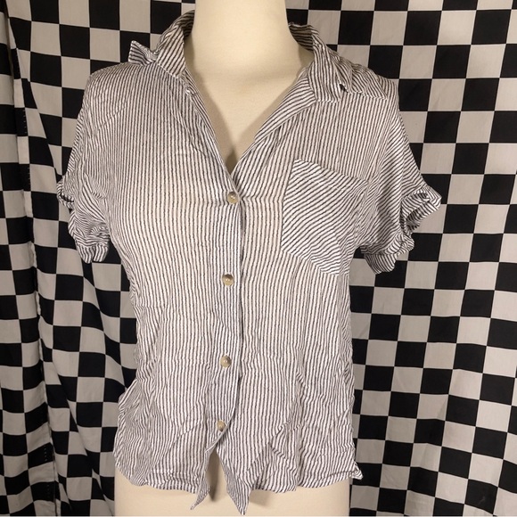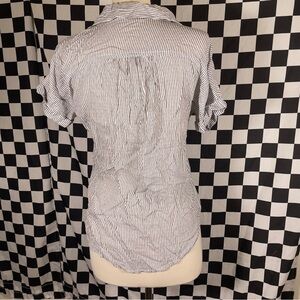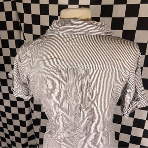 SIM & SAM grey white stripe button up blouse