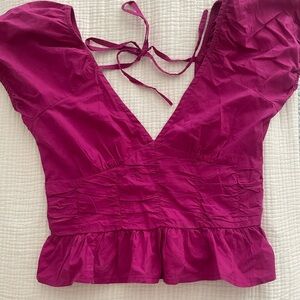 Sim and Sam short sleeve ruched blouse with open back tie detail. Beautiful magenta color! EUC, worn once