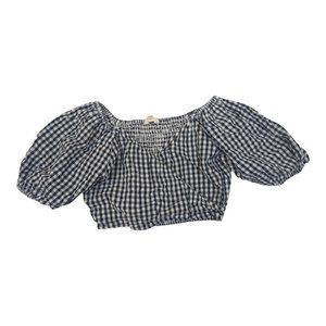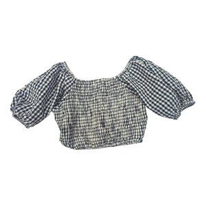 Sim & Sam Blue and White Gingham Seersucker Smocked Crop Top Small