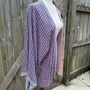 Sim & Sam Boho Geometric Printed Smocked Back Flowy Summer Kimono Cardigan