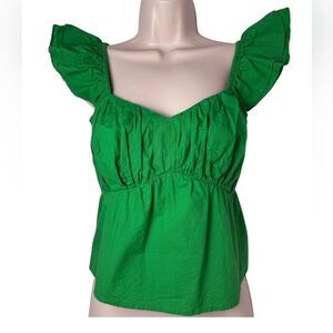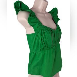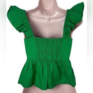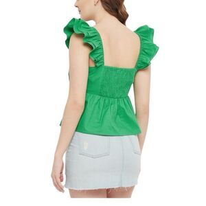 Sim & Sam Bright Green Poplin Ruched Bust Smocked Flutter Top