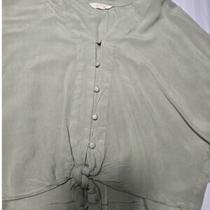 Sim & Sam Crop Top Button Up with Tie Green Women's Size Small