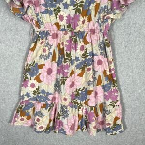 Sim Sam Dress Womens Small Floral Ruffle Tiered Flowy Resort Cottage Boho Rodeo Beach Vacation Resort Coastal Western Cowgirl Rodeo Bohemian Hippie Peasant Fairy Short Sleeve Lined Elastic Waist Fit Flare Mini Sundress