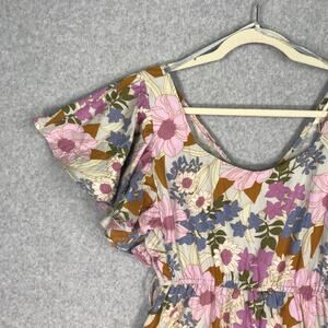 Sim Sam Dress Womens Small Floral Ruffle Tiered Flowy Resort Cottage Boho Rodeo*