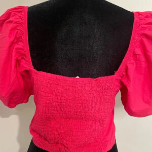 Sim & Sam Hot Pink Puff Sleeve Blouse Top With Cutout at Chest