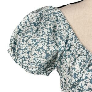 Sim & Sam Large Ditsy Peasant Top Floral Off-Shoulder Puff Sleeves Stretch Multi