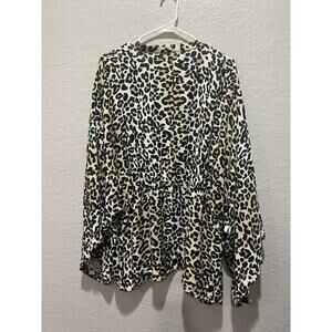 Sim & Sam Leopard Print Kimono Open Cardigan Top Sz XL Boho Indie Artsy