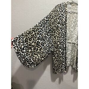 Sim & Sam Leopard Print Kimono Open Cardigan Top Sz XL Boho Indie Artsy