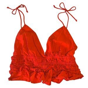 Sim & Sam MED PAOLINA RED Smocked Strappy Ruffled Tiered Boho Festival Crop Top