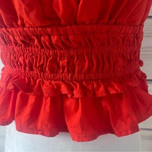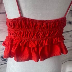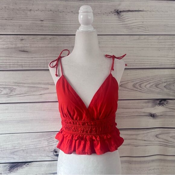 Sim & Sam Red-Orange V Neck Tie Shoulder Crop Top