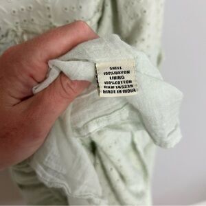 This elegant mint green eyelet dress is perfect for any occasion. Its delicate design and soft color make it a must-have for your wardrobe.