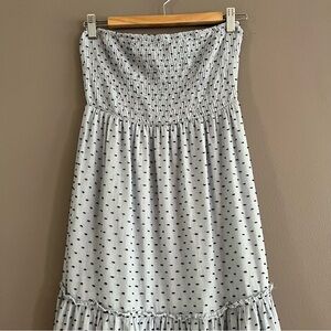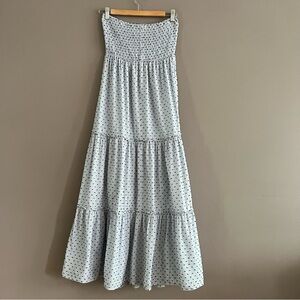 Sim & Sam Strapless Tiered Maxi Dress Smocked Swiss Dots Cottagecore Blue Small