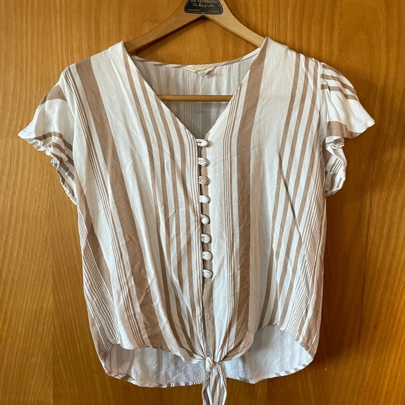 Sim & Sam button up tie front striped top