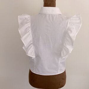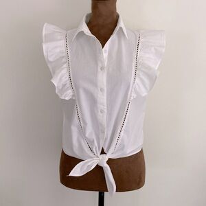 Sim & Sam WHITE POPLIN TIE FRONT RUFFLE TOP