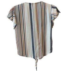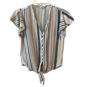 Sim & Sam Women's Striped Tie Front Blouse Short Sleeve Multicolor S