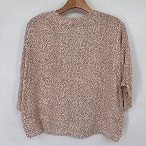 Sim & Sam Womens beige Pink Leopard Print Top V-Neck Tie-Front Size Large Rayon