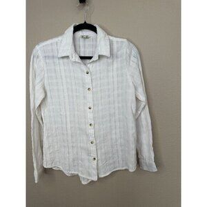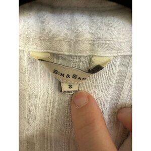 Sim & Sam Womens white Blouse Small long sleeve button up collared sheer beach