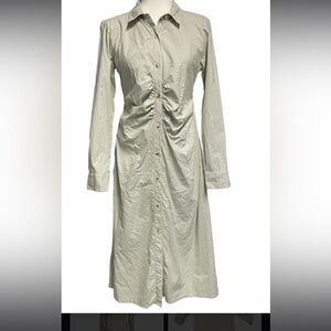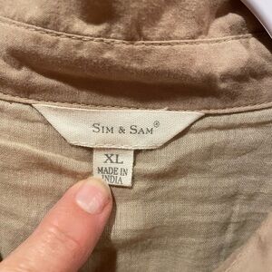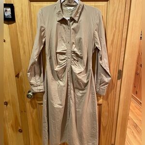 Sim & Sam button front shirt dress camel ruched middle long sleeve size XL