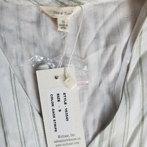 Sim & Sam sage striped button up short sleeve top size small NWT
