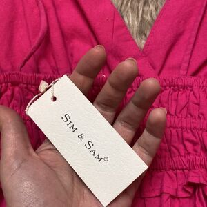 Sim & Sam V-neck Plunge Shoulder Tie Ruffle Crop Cotton Cami Babydoll Tank