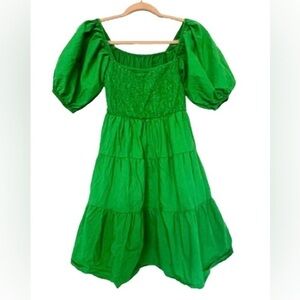 Sim and Sam 100% Cotton Kelly Green Tiered Puff Sleeve Mini Dress Size S