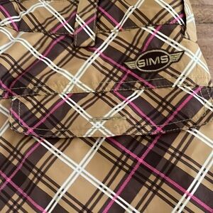 SIM ski pants, size medium , Velcro adjustable waist tabs, vented thighs, missing button on right back pockets