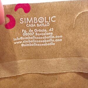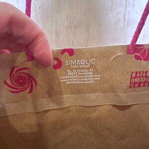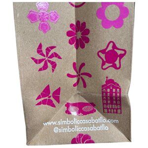 This paper gift bag, adorned with vibrant pink geometric patterns, emanates a sense of artistic charm and elegance. The bag features the distinguished branding of Simbolic Casa Batlló Store, making it a delightful keepsake or an ideal packaging choice for gifts. Its sturdy paper construction ensures durability, while the handles provide convenient carrying. An aesthetic blend of cultural motifs and practical design, this bag is both a visual and functional delight.