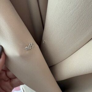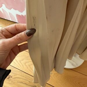 Simhkai beige Ambretta dress. One of the pleats in the skirt has some black markings that blend in while it is being worn. Additional hook closure added for coverage in the chest area.