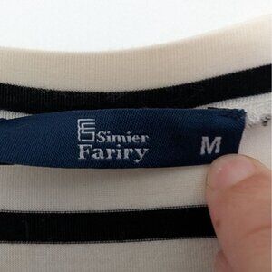 Simier Fariry Stripe Dress Womens Size Medium White A Line Stretch Short Sleeve