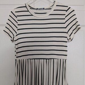 Simier Fariry Womens White and Black Stripe Short Sleeve A Line Dress Size Medium