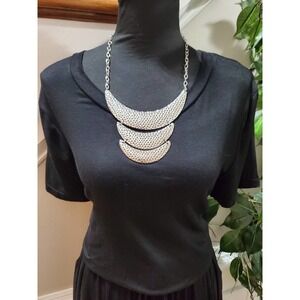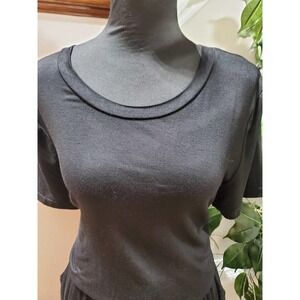 Simier Fariry Women Black Rayon Round Neck Short Sleeve Knee Length Dress Size L