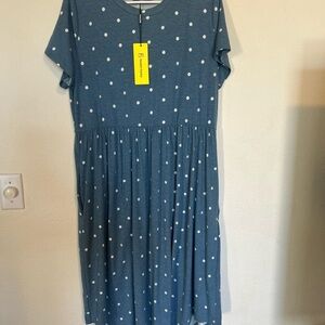 Simier Fariry Women's 1X Comfy Midi Casual Dress with Pockets Polka Dot Dress