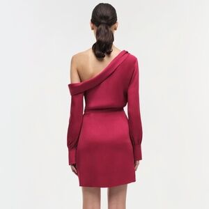 Simkhai Cameron Dress Color: Cherry Size: 2 Concealed side zipper closure Shell: 89% Acetate 11% Polyester, Lining: 100% Polyester Dry Clean Only Imported Pit to pit 17.5” Waist 13.5” Length 34”