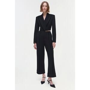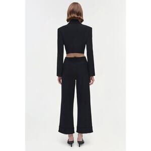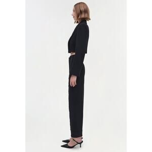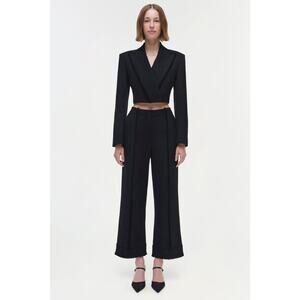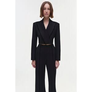 This cropped outerpiece brings a modern twist to classic tailoring with its structured shoulders and refined silhouette. Perfect for making a statement, it effortlessly pairs sophistication with a touch of edge.