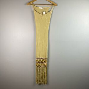 Simkhai Diana Beaded Macramé Midi-dress In Dried Pineapple