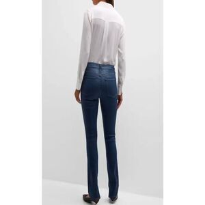 SIMKHAI "Rae" dark wash denim jeans High rise Fivepocket style Skinny fit Ankle length Button/zip fly Cotton/elastane