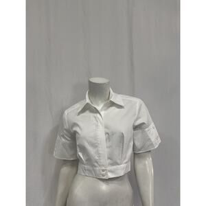 Simkhai 'Sabrina' White Cotton Top Size XS: front button closure, buttoned cuffs.