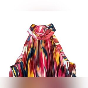 raspberry pink/multicolour all-over graphic print flared design mock neck sleeveless straight hem