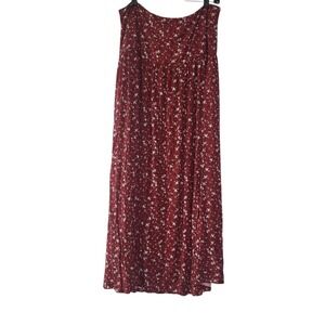 Simlu A Line Maxi Skirt Womens Red 3XL Floral Pleated Stretch Knit Ankle Length