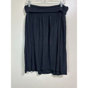 Simlu Women's Slub Knit Black Hipster Mini Skirt with Pockets, Size XL. Wide 5" waistband with ruching on the sides, is folded over in pictures. Great pre-owned condition, no rips, tears or stains.