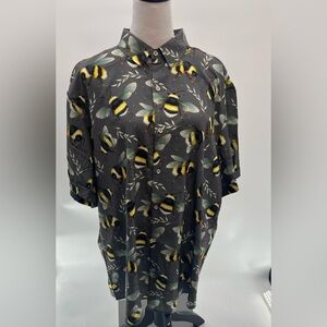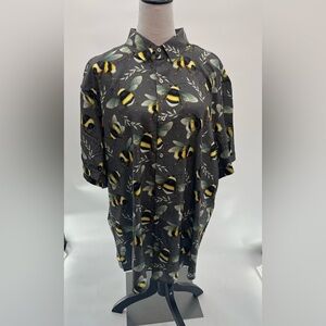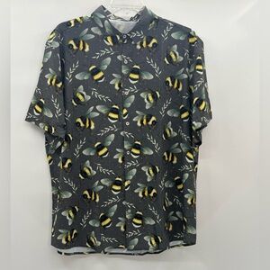 Simmashah Men's Bumble Bee Print Short Sleeve Button-Up Shirt – Size XXL – NWT