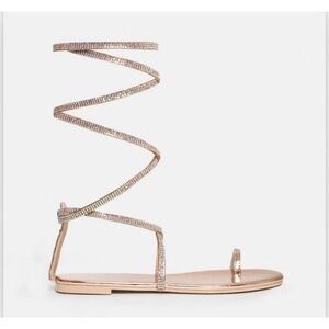 Simmi London Averie Rose Gold Lace Up Diamante Rhinestone Sandals Shoes Size 11