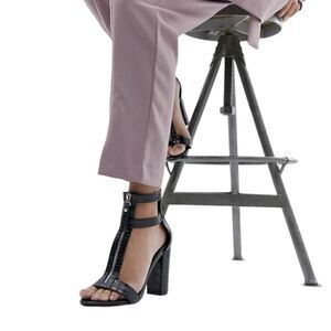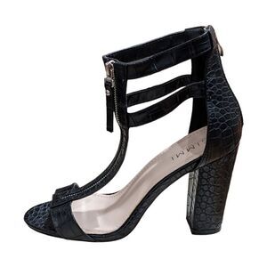 Simmi London Black Zip Up Detail Mock Croc Block Heel Sandals Size 7