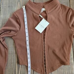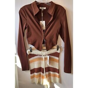 Simmi London Womens Brown Tobacco Long Sleeve Corset Top- Size 6 - Soft Stretch Knit- Hook and Eye Front Closure - Cropped - New w/ Tags - Sexy - Clubwear - Date Night Top- Girls Night Top- Beach- Crop Top - One Photo shows paired w/ L Space Knit Cover Up Shorts (newly listed)