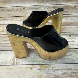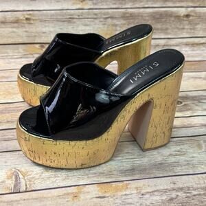 Simmi London Womens Black & Gold Patent Leather Platform Heels 9 Retro 70s Inspo