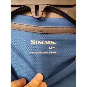 Simms Challenger Solar Shirt Men Medium Blue Carbon Fishing Tee Short Sleeve NEW